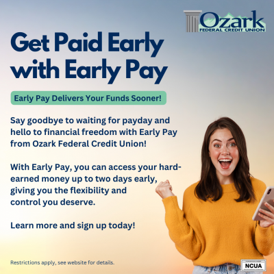 At Ozark Federal Credit Union, we believe in empowering our members with financial flexibility and convenience. That's why we're excited to introduce Early Pay!